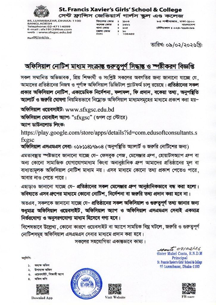 অফিসিয়াল নোটিশ মাধ্যম সংক্রান্ত গুরুত্বপূর্ণ সিদ্ধান্ত ও স্পষ্টীকরণ বিজ্ঞপ্তিBy SFXGSC / February 9, 2026