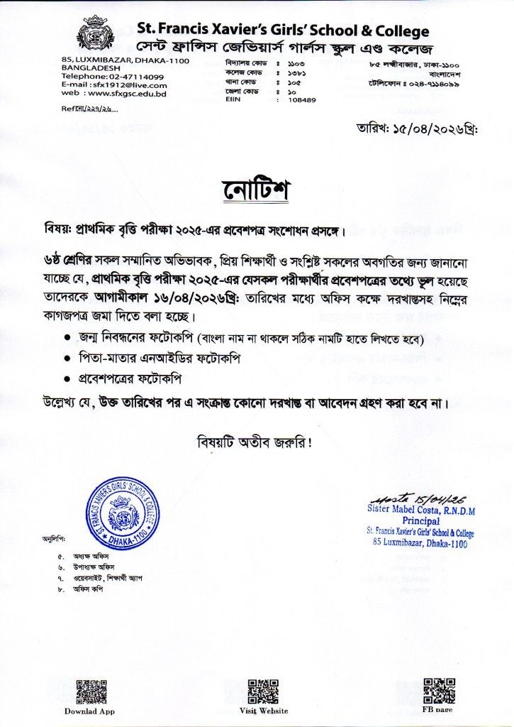 প্রাথমিক বৃত্তি পরীক্ষার প্রবেশপত্র ভুল সংশোধন সংক্রান্ত জরুরি নোটিশ।