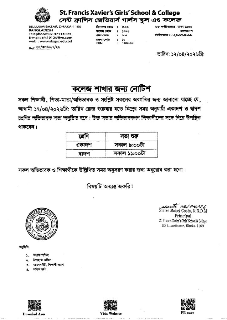 আগামী ১৯/০৪/২০২৬ তারিখ শিক্ষার্থীদের ছুটির সময় সংক্রান্ত জরুরি নোটিশ।